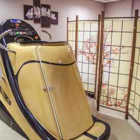 3)Vacu Active SPA Infrared — инновационный аппарат, на котором клиент просто лежит, а над ним перемещается «рамка» с лампами инфракрасного излучения и LED-коллагеновой лампой, воздействующими одновременно с арома-, фото- и хромотерапией и электростимуляцией. Тренажер эффективен, если противопоказаны физические нагрузки, имеются медицинские ограничения или реабилитационный период после операций. Исчезают лишние килограммы, уменьшается объем «проблемных частей» тела, повышается тонус мышц, уменьшается и постепенно ликвидируется целлюлит, улучшается внешний вид и структура кожного покрова, благотворно влияет на сердечно-сосудистую систему, укрепляется иммунитет, снимается стресс и депрессия, улучшается сон.